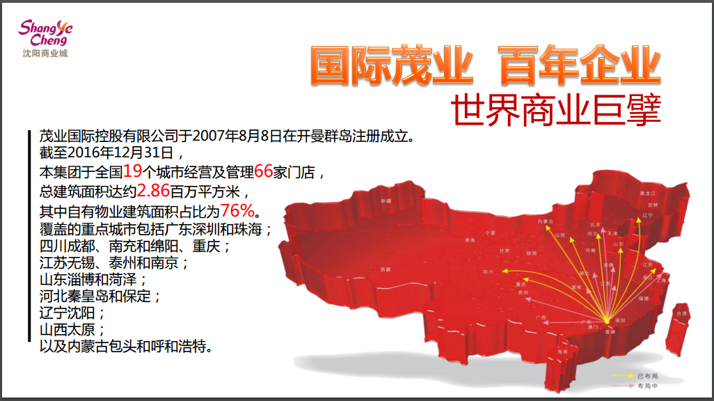 鐘總在向與會(huì)嘉賓介紹茂業(yè)國際旗下零售、地產(chǎn)、酒店、物業(yè)4大支柱產(chǎn)業(yè),全國五大區(qū)域30個(gè)中心城市戰(zhàn)略布局的同時(shí),重點(diǎn)推介了以沈陽商業(yè)城為代表的沈陽區(qū)域5家重點(diǎn)商業(yè)及地產(chǎn)項(xiàng)目。